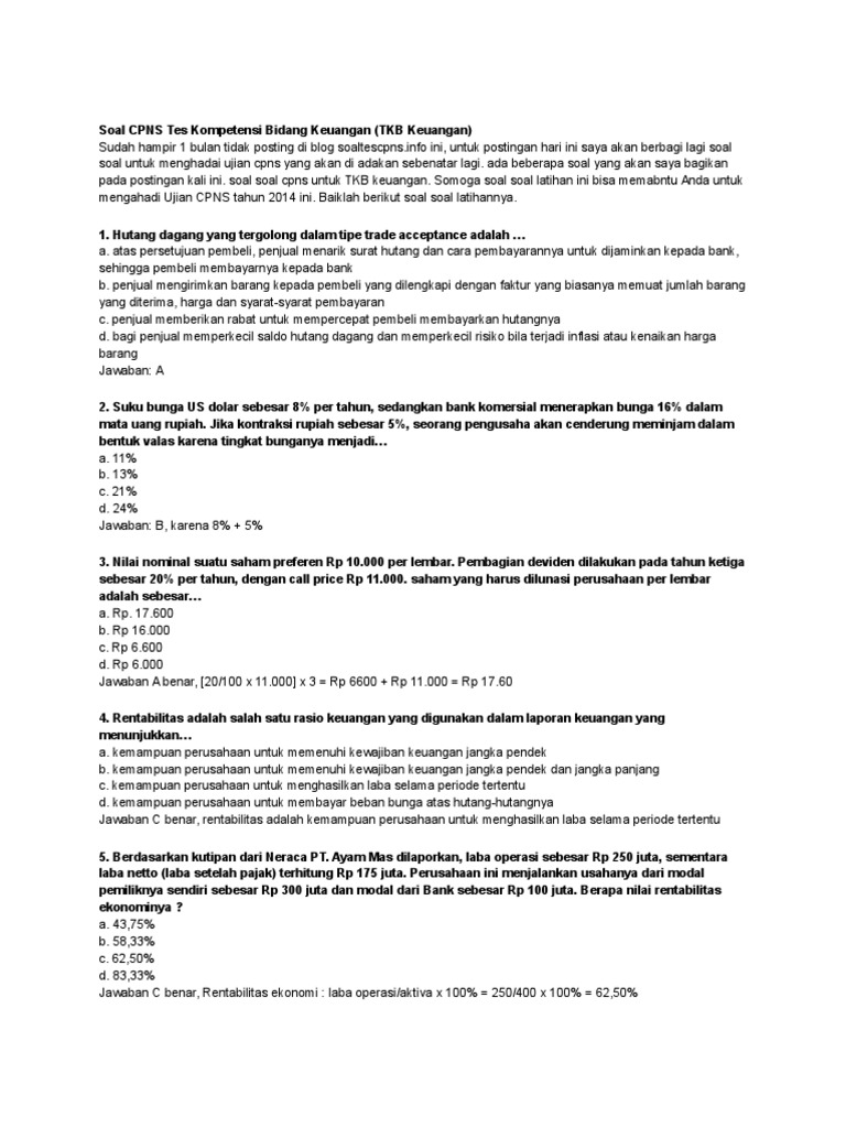 Contoh Soal Cpns Analis Laporan Keuangan Dan Jawabannya 2021 from i1.wp.com Contoh soal dan jawaban tes intelegensi umum untuk cpns/stan terbaru contoh soal dan jawaban tes karakteristik pribadi untuk cpns/stan terbaru. Cpns terdiri dari beberapa tes diantaranya tes kompetensi dasar (tkd) dan tes kompetensi bidang (tkb) dengan total soal 100 butir dan waktu 1. Contoh soal akuntansi jurnal umum ini adalah transaksi yang akan terjadi pada club sepak bola dan perusahaan ini dikelola oleh tn. Terakhir, tkp menyoal terkait pelayanan publik, jejaring kerja, sosial budaya, hingga teknologi informasi dan komunikasi. Kita bisa mendapatkannya dengan mudah. Soal cpns 2021 sering muncul dan kunci jawaban pembahasan | latihan contoh soal. Admin akan informasikan syarat pendaftaran dan petunjuk cara daftar cpns 2021 untuk lulusan sma slta smu smk d3 s1 sarjana. Contoh soal cpns 2021 tiu berkaitan dengan analogi, silogisme, analitis, berhitung, deret angka, soal cerita, analogi, ketidaksamaan hingga serial.